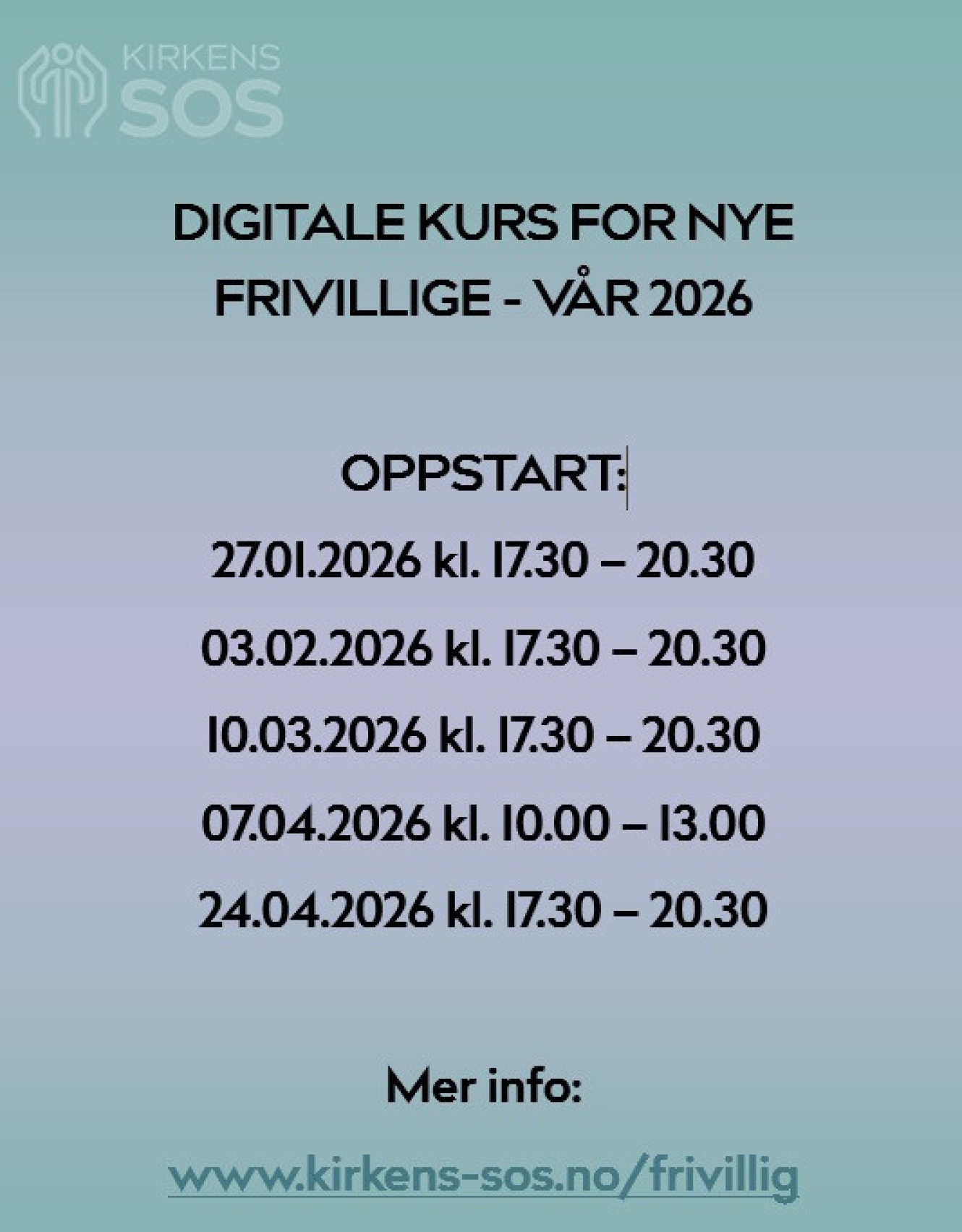 Om vinter/vår 2026 starter vi digitale innføringskurs for nye frivillige til vår viktige kristetjenesten.