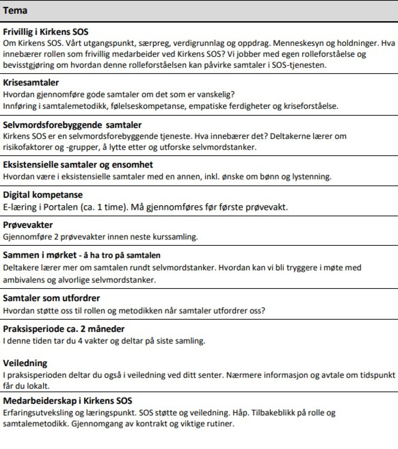 Du får et verdifullt innføringskurs fordelt på 40 timer samt en praksisperiode der du lærer å møte medmennesker i krise.